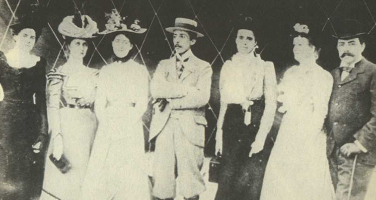 Alguns familiares de Santos Dumont: (esq-dir) Maria Rosalina, Virgínia, Gabriela, Santos Dumont, Francisca, Amália (cunhada), e seu marido Henrique.